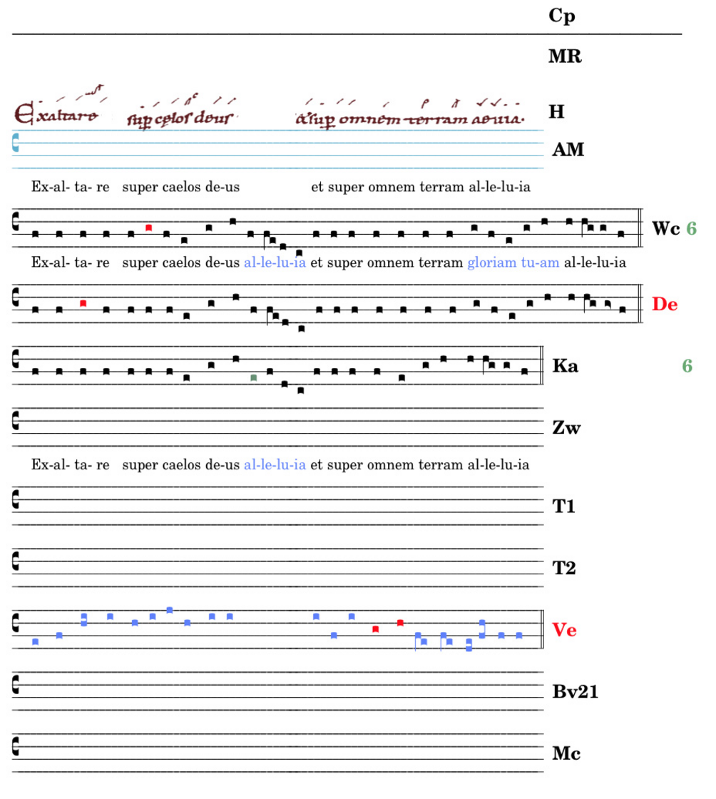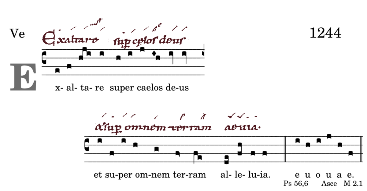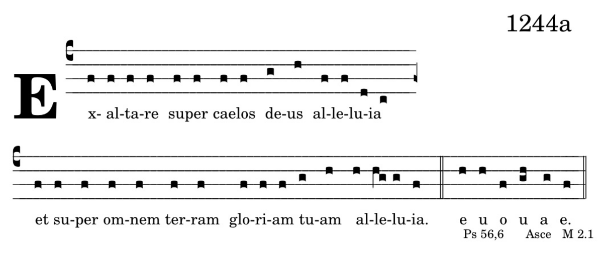 Exaltare super caelos deus alleluia / et super omnem terram gloriam tuam alleluia.