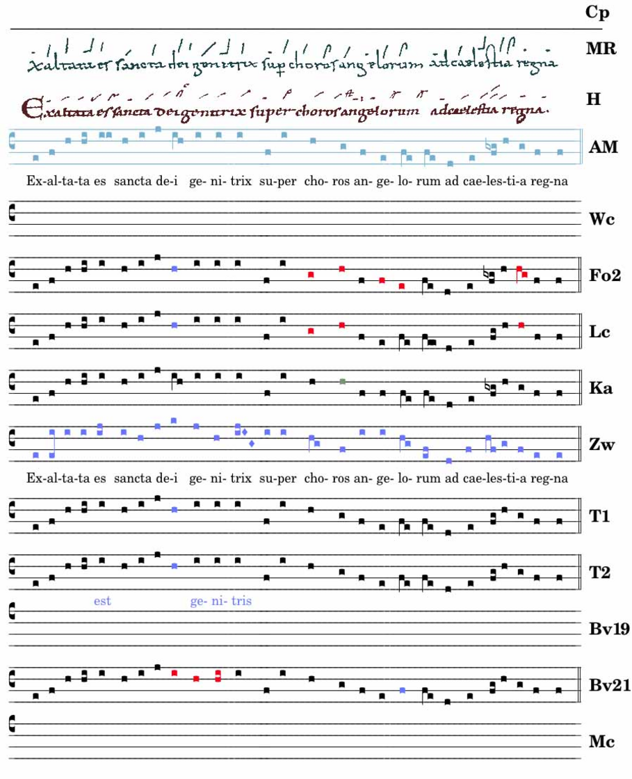 Exaltata es / sancta dei genitrix / super choros / angelorum / ad caelestia regna.