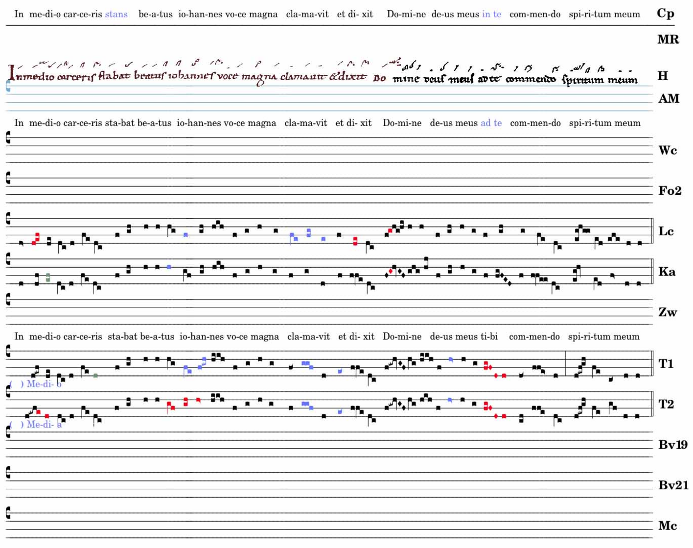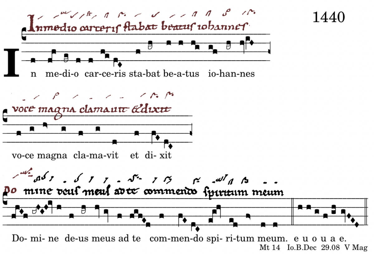 In medio carceris / stabat beatus iohannes / voce magna clamavit / et dixit / domine / deus meus / ad te commendo spiritum meum.