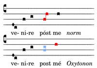 1INC Clv (1742 ← → 1778) Die kClivis beschleunigt auf „póst me“ hin. Das Quilisma ist hier notwendig „venire post me“ könne auf „post mé“ betont sein, dann wäre SekundPes zu singen, das Quilisma sichert die beabsichtigte Betonung.