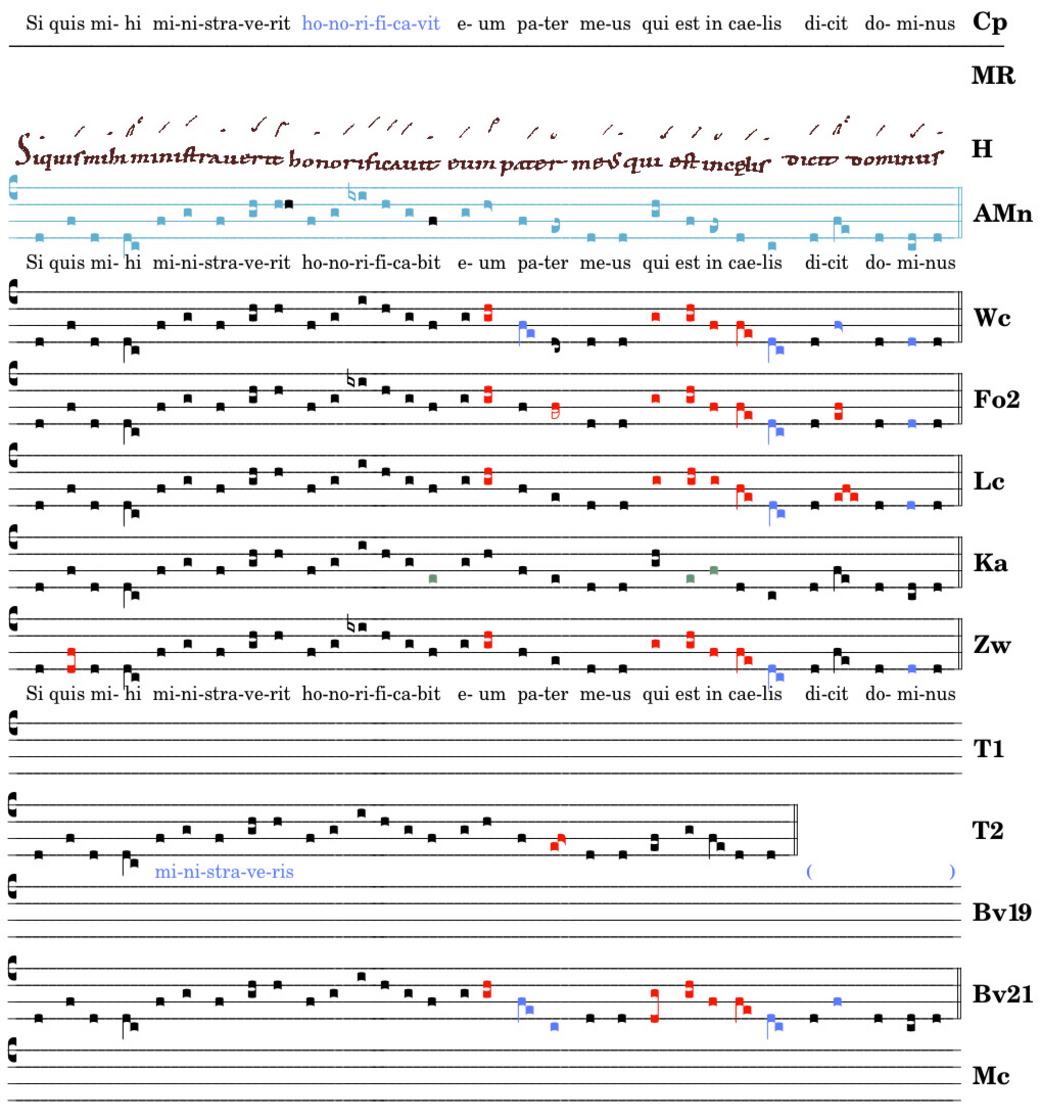 Si quis mihi ministraverit / honoríficávit / éum pater meus / qui est in caelis . dicit dominus.