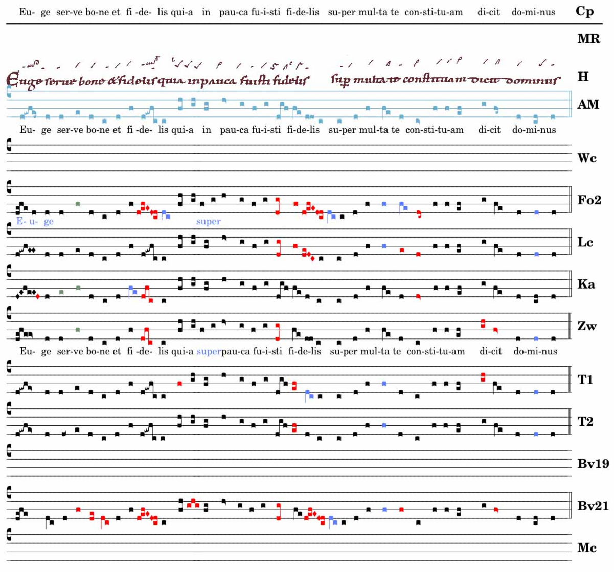Euge serve bone et fidelis / quia / in pauca fuisti fidelis / super multa te con . stituam dicit dominus.