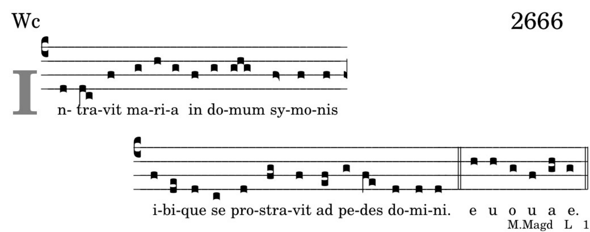 Intravit maria in domum symonis / ibique se prostravit / ad pedes domini.