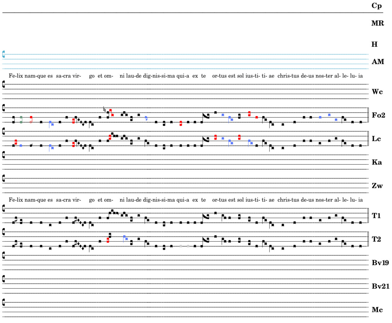 Felix namque es sacra virgo / et omni laude dignissima / quia ex te ortus est / sol iustitiae / christus . deus noster alleluia.