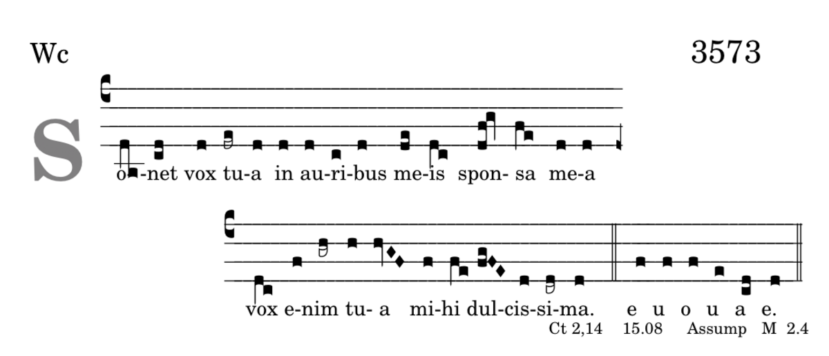 Sonet vox tua / in áuribus meis : sponsa mea . vox enim tua / mihi dulcissima.