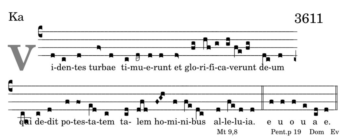 Videntes turbae / timuerunt et glorificaverunt deum / qui dedit potestatem / talem hominibus / alleluia.