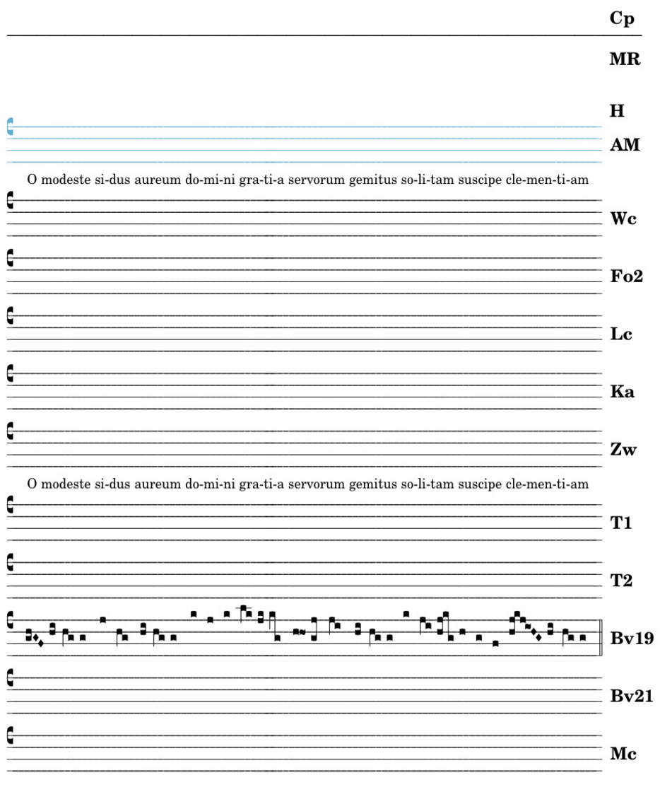 O modeste sidus aureum / domini gratia servorum gemitus / solitam suscipe / clementiam.