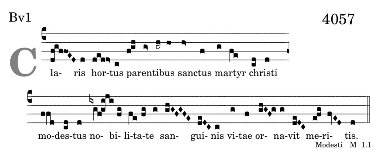 Claris hortus parentibus / sanctus martyr christi / modestus nobilitate sanguinis / vitae ornavit meritis.