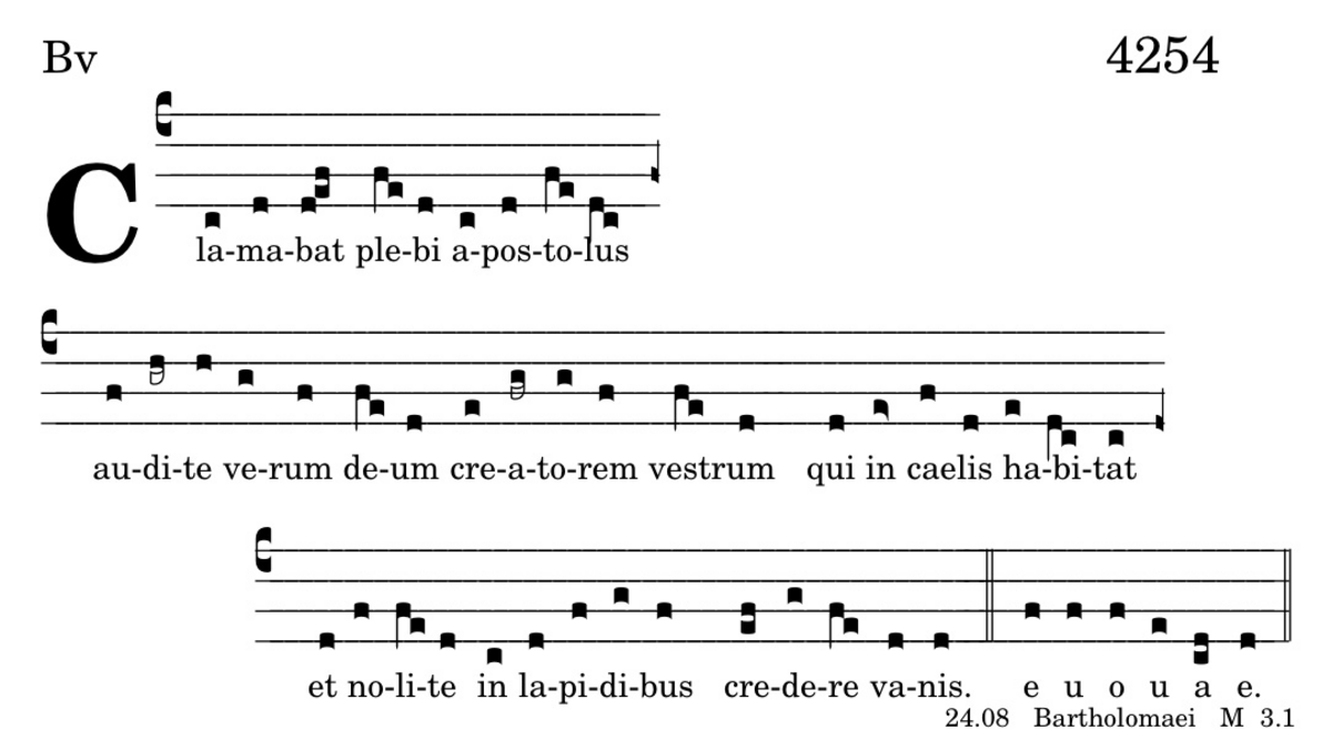 Clamabat plebi apostolus / audite verum deum creatorem vestrum qui in caelis habitat / et nolite in lapidibus / credere vanis.