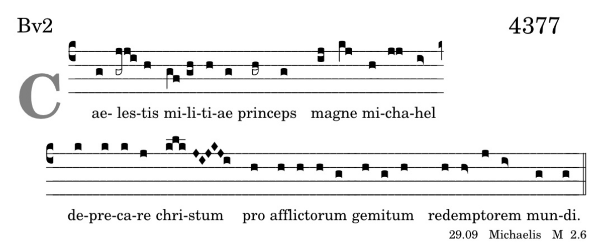 Caelestis militiae princeps / magne michael / deprecare christum / pro afflictorum gemitum / redemptorem mundi.