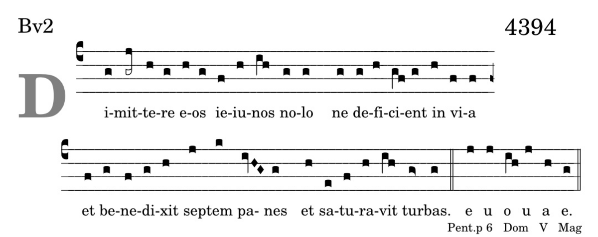 Dimittere eos ieiunos nolo / ne deficient in via / et benedixit septem panes / et saturavit turbas.
