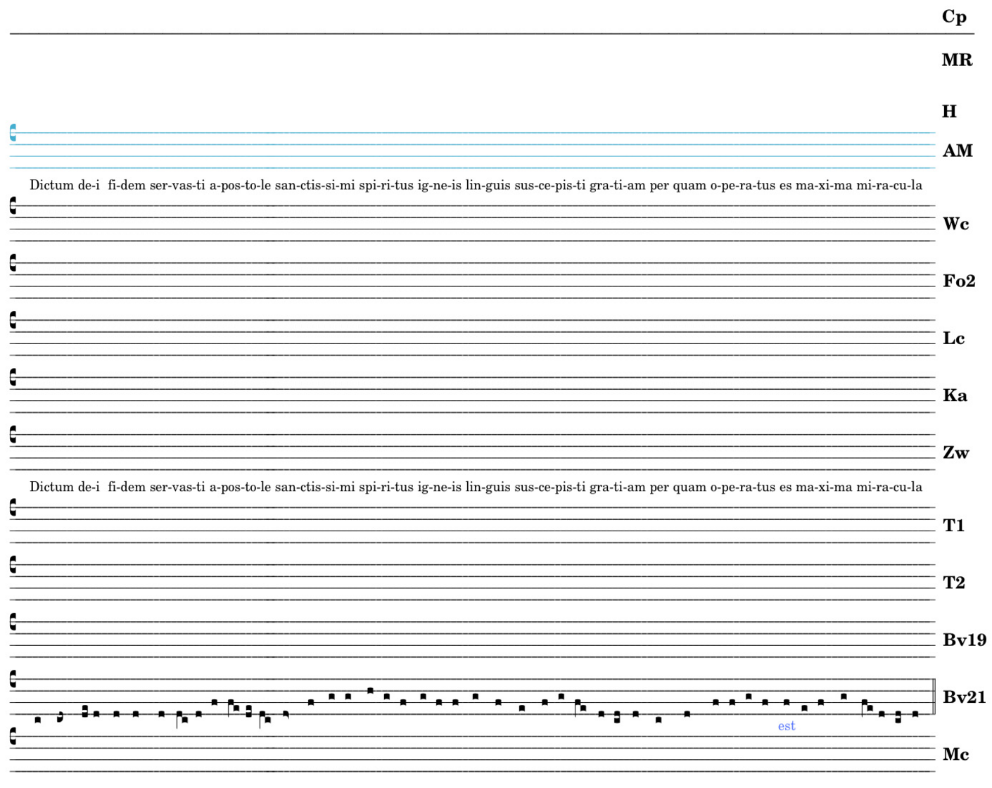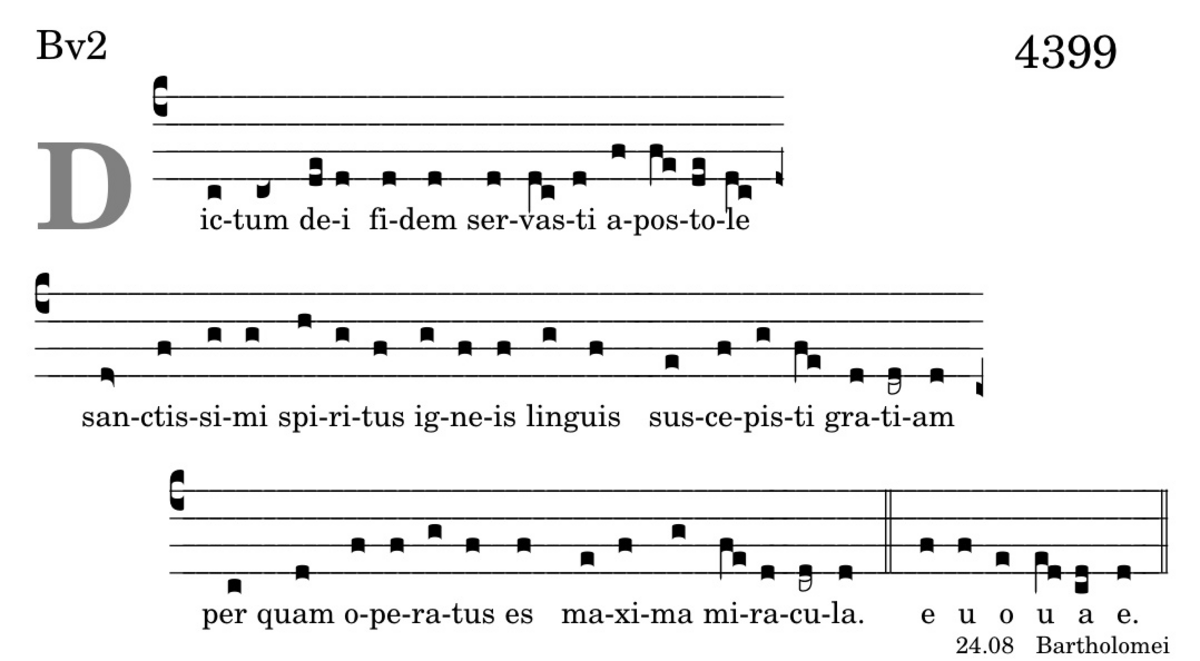 Dictum dei fidem / servasti apostole / sanctissimi spiritus / igneis linguis / suscepisti gratiam / per quam operatus es / maxima miracula.