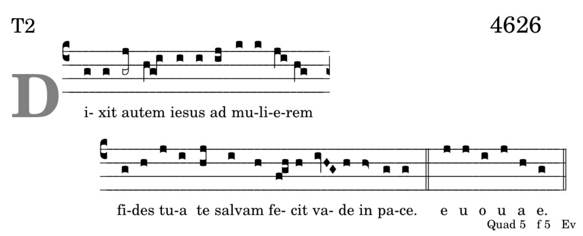Dixit autem iesus / ad mulierem / fides tua te salvam / fecit vade in pace.