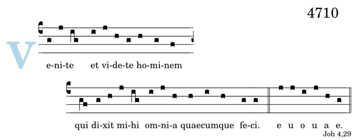 Venite / et videte hominem / qui dixit mihi / omnia quaecumque feci.