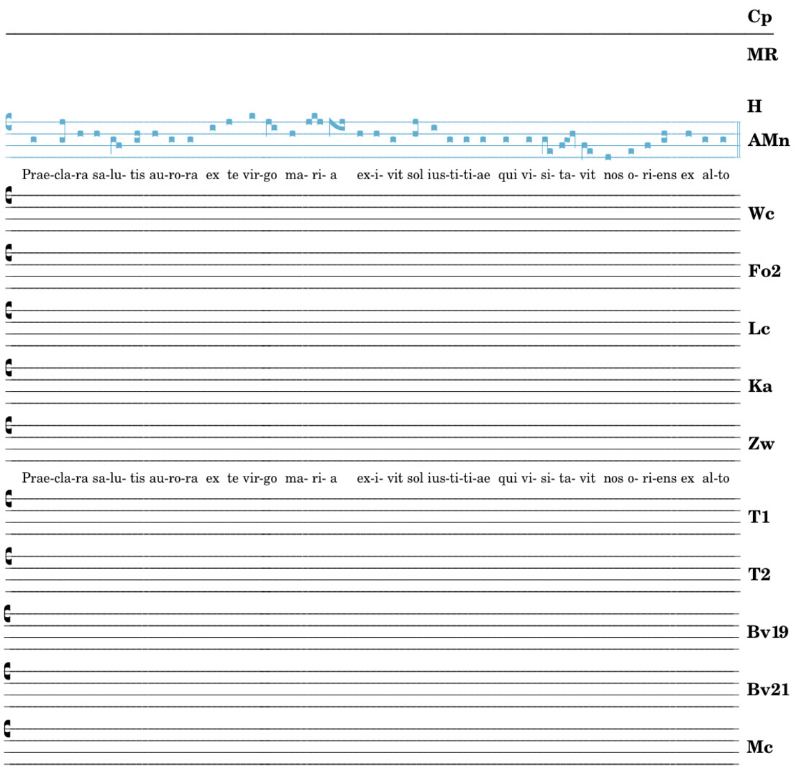 Praeclara salutis aurora / ex te virgo maria → exivit sol iustitiae . qui visitavit nos / oriens ex alto.