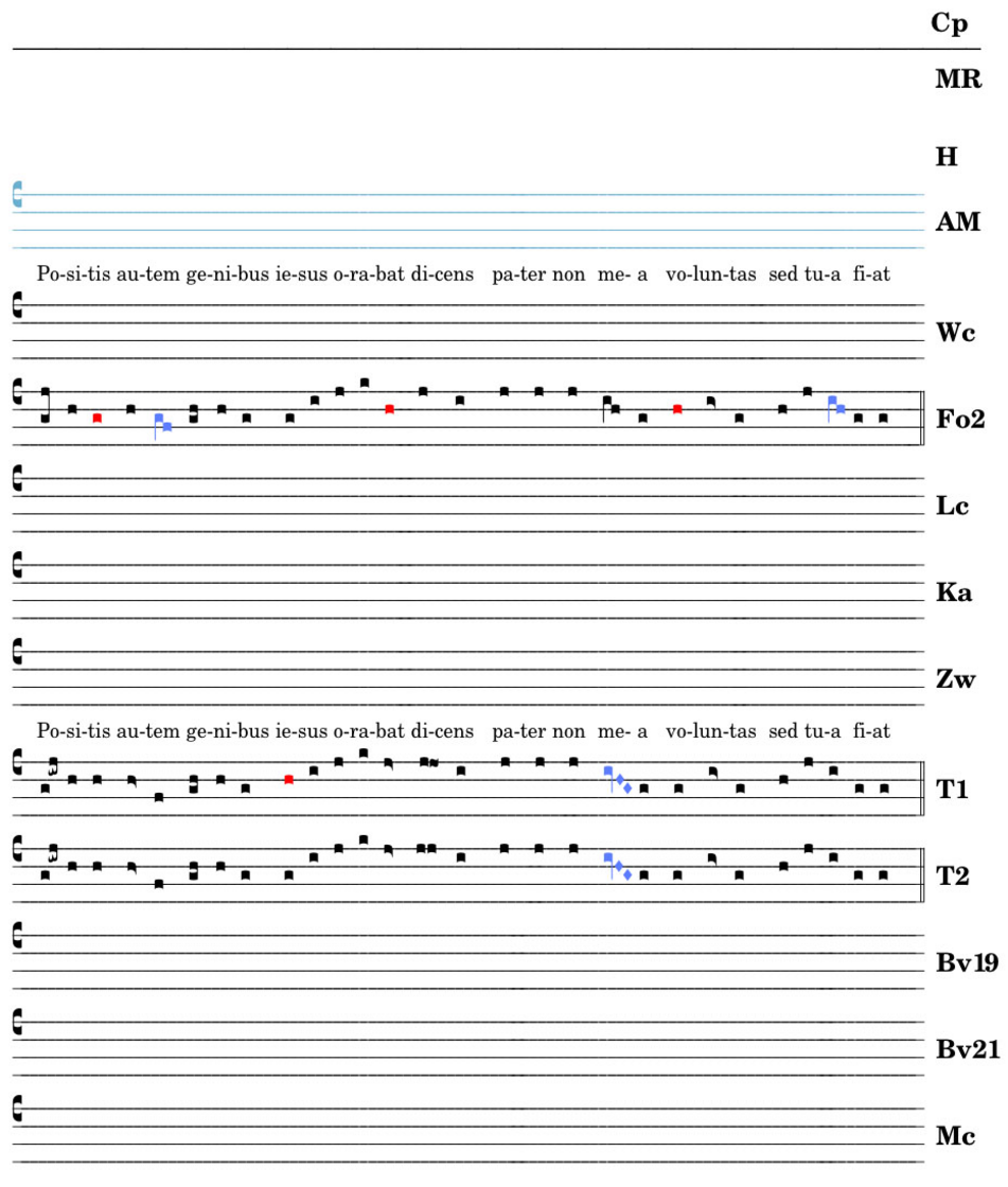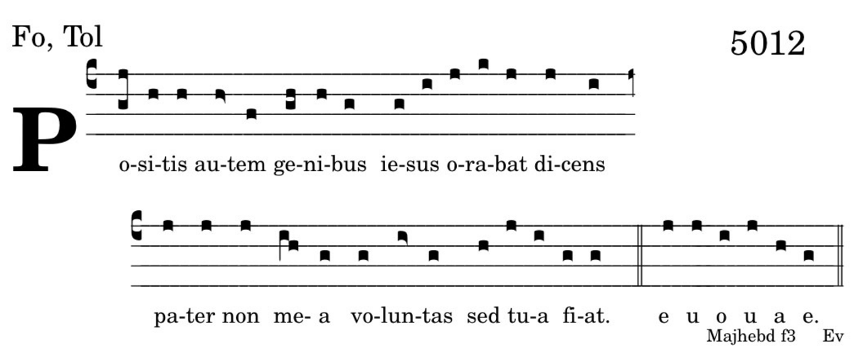 Positis autem genibus / iesus orabat dicens / pater non mea / voluntas sed tua fiat.