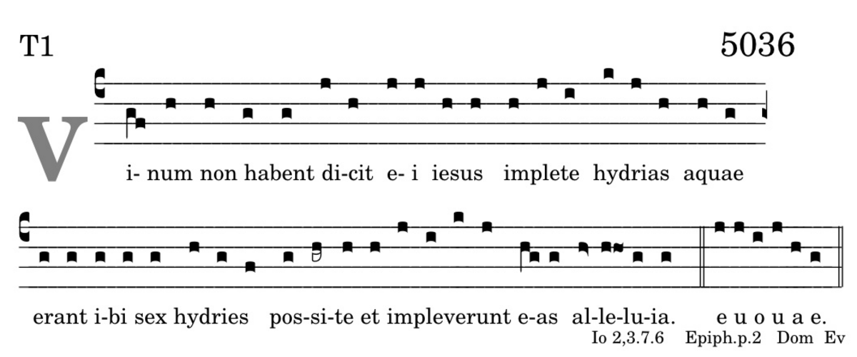 Vinum non habent / dicit ei iesus / implete hydrias aquae . erant ibi sex hydriae / possite / et impleverunt eas / alleluia.