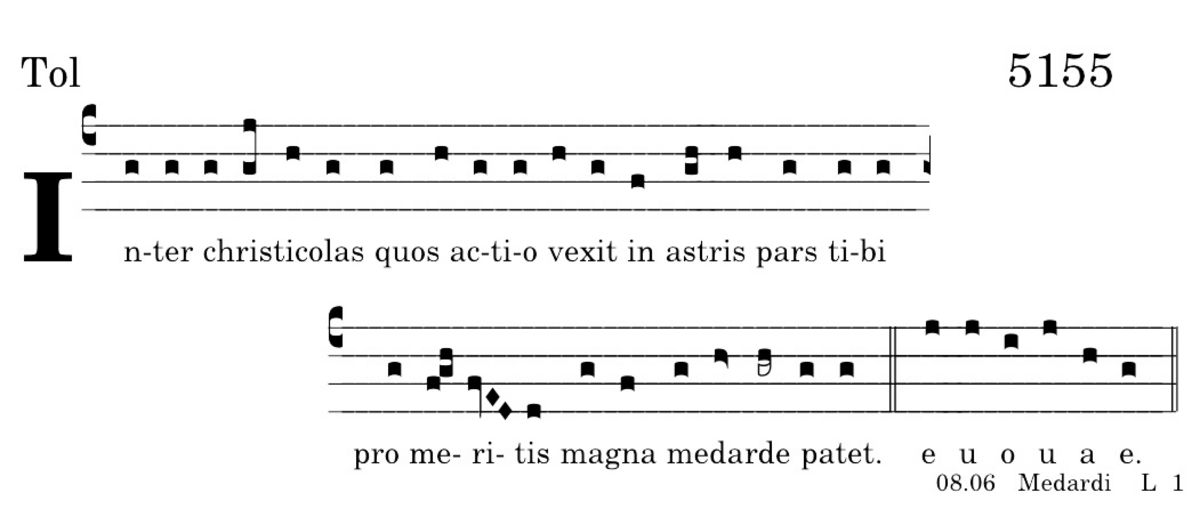 Inter christicolas / quos actio vexit in astris pars tibi / pro meritis / magne medarde patet.