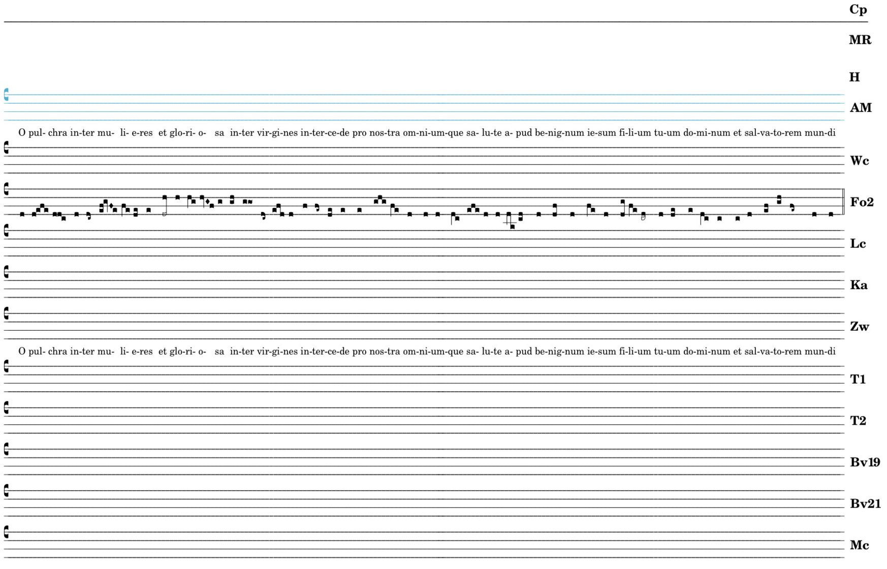 O pulchra inter mulieres / et gloriosa inter virgines / intercede pro nostra omniumque salute / apud benignum iesum filium tuum dominum / et salvatorem mundi.