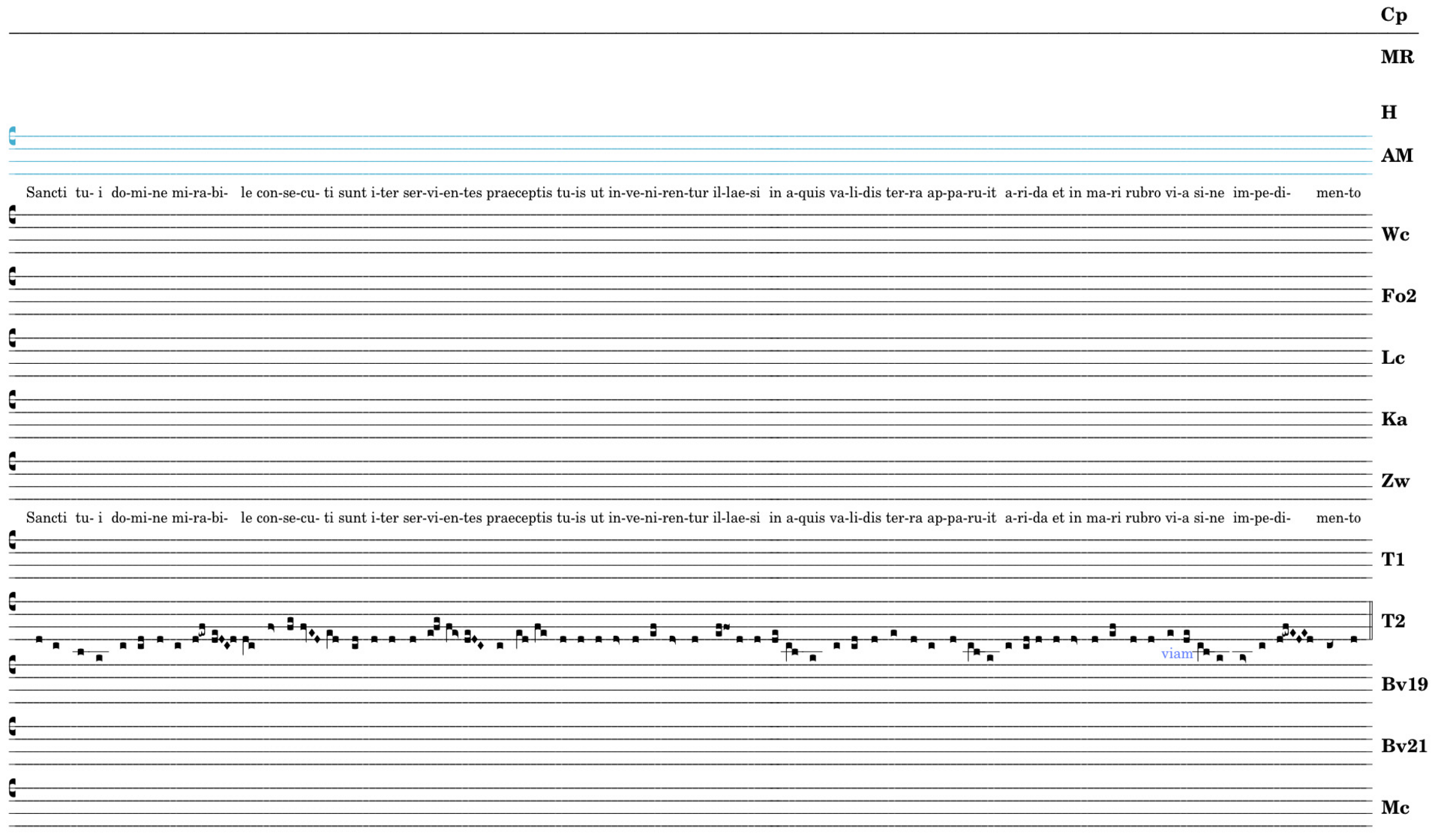 Sancti tui domine / mirabile consecuti sunt iter / servientes praeceptis tuis / ut invenirentur illaesi / in aquis validis / terra apparuit arida / et in mari rubro / via sine impedimento.