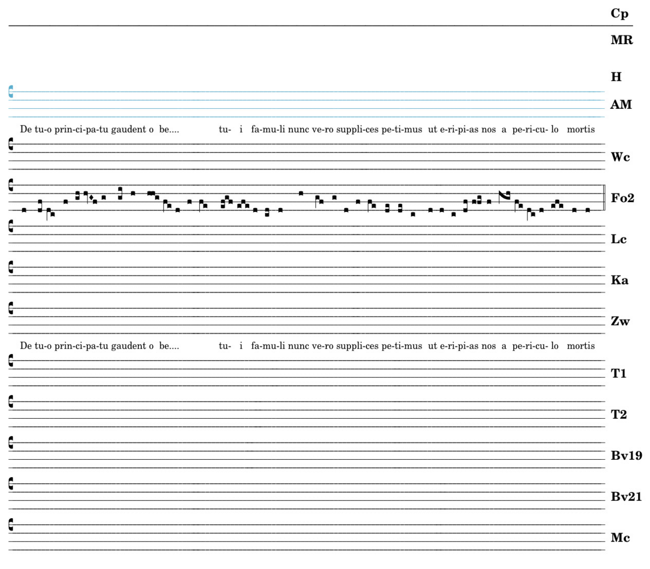 De tuo principatu gaudent / o beate petre tui famuli / nunc vero supplices petimus / ut eripias nos a periculo mortis.