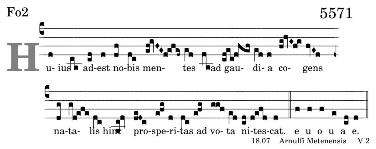 Huius adest nobis mentes / ad gaudia cogens / natalis hinc prosperitas / ad vota nitescat.