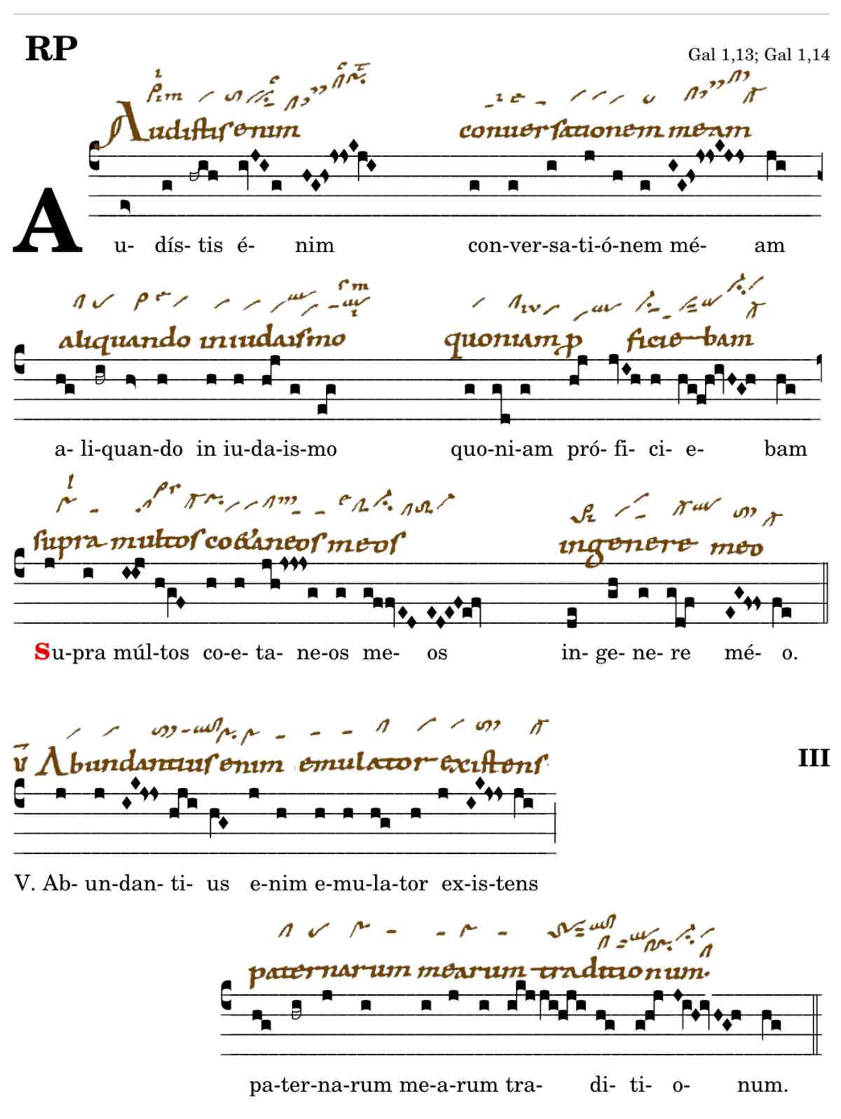Audistis enim / conversationem meam / aliquando in iudaismo / 📍quoniam proficiebam / 📍Supra multos coetaneos meos / ingenere meo. V. Abundantius enim emulator existens* paternarum mearum traditionum.