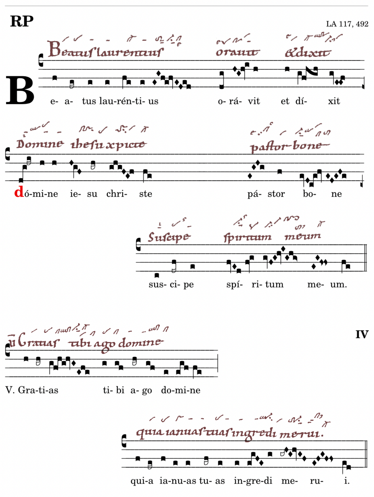 Beatus laurentius / oravit et dixit / 📍domine iesu christe / pastor bone / 📍suscipe / spiritum meum. V. Gratias tibi ago domine (iesu christe)* quia ianuas tuas ingredi merui.