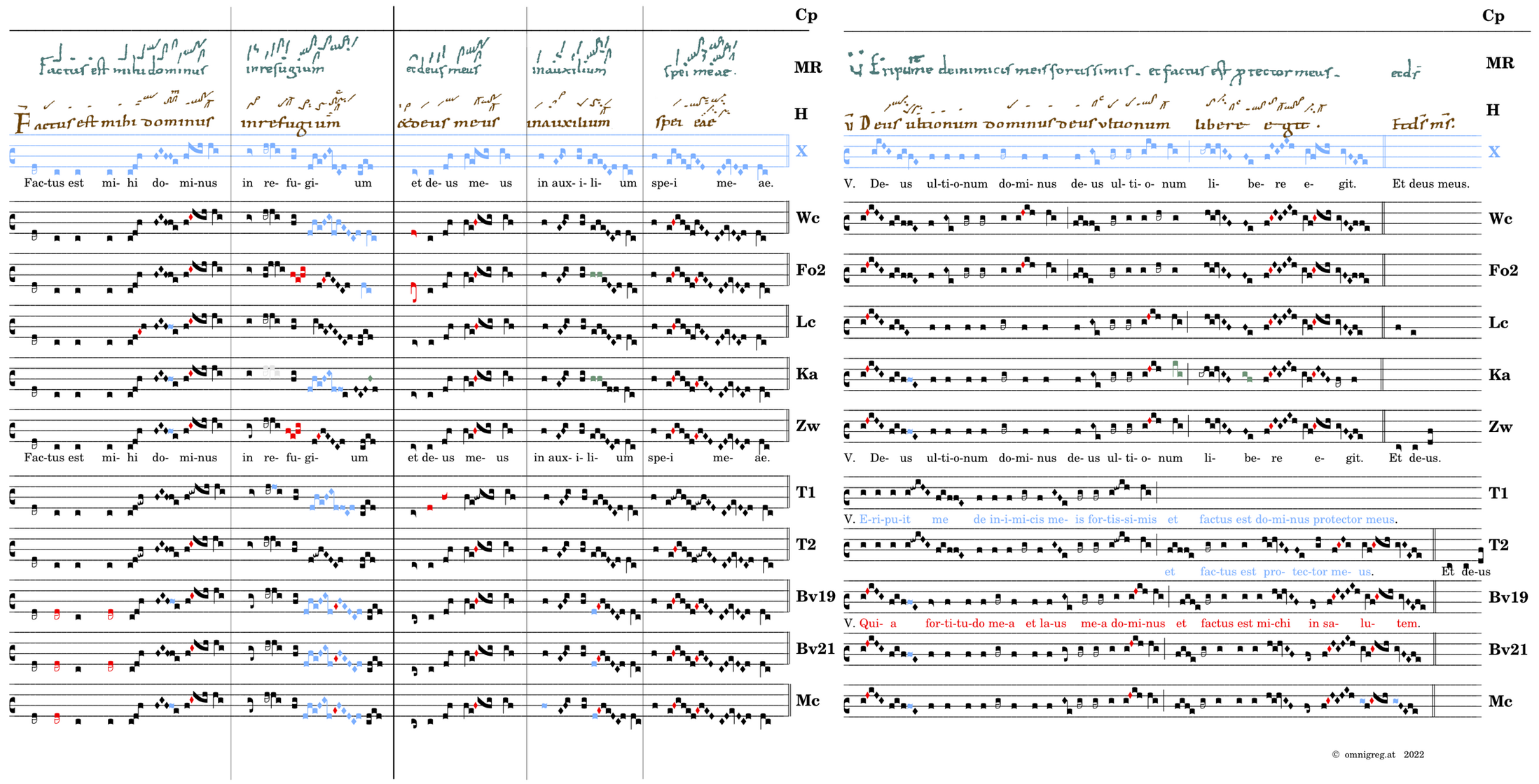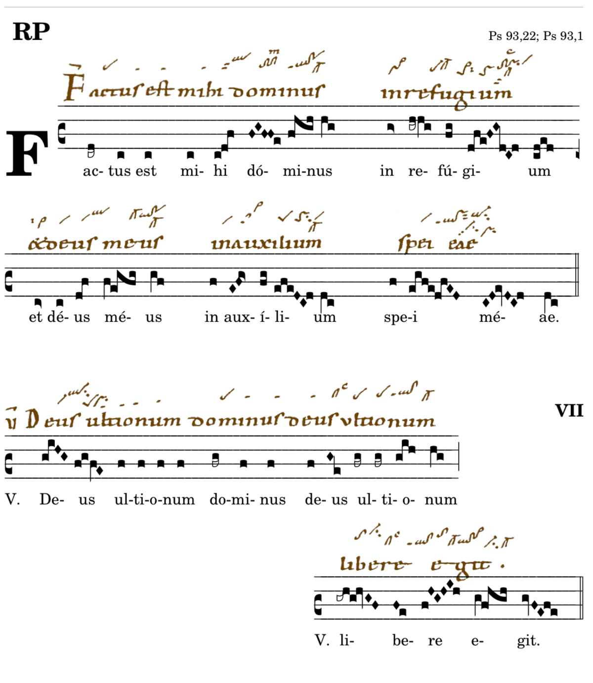 Factus est mihi dominus / in refugium / 📍Et deus meus 📍in auxilium / spei meae . V. Deus ultionum dominus deus ultionum* libere egit. (Tol) V.Eripuit me de inimicis meis fortissimis et factus est (dominus) protector meus. (Bv,Mc) V.Quia fortitudo mea et laus mea dominus et factus est michi in salutem.