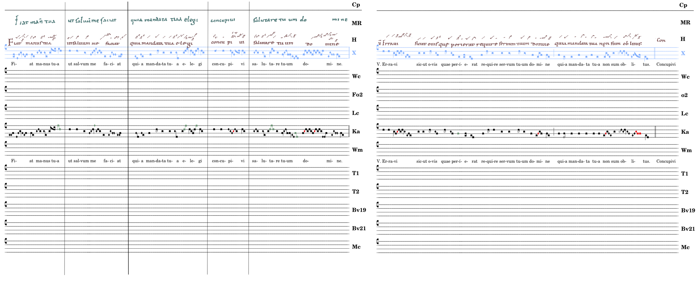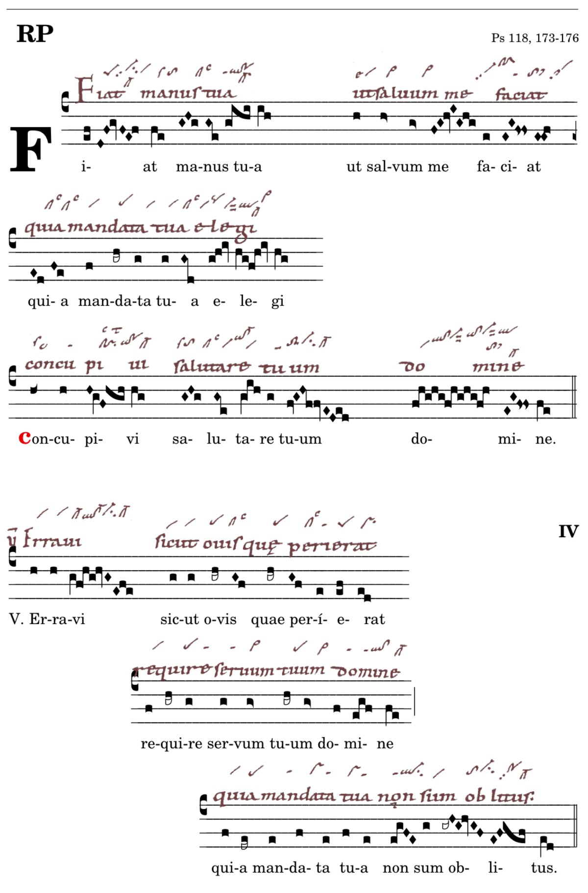 Fiat manus tua / ut salvum me faciat / quia mandata tua elegi / 📍concupivi / salutare tuum / domine. V. Erravi sicut ovis quae perierat (MR:-periit) require servum tuum domine* quia mandata tua non sum oblitus.