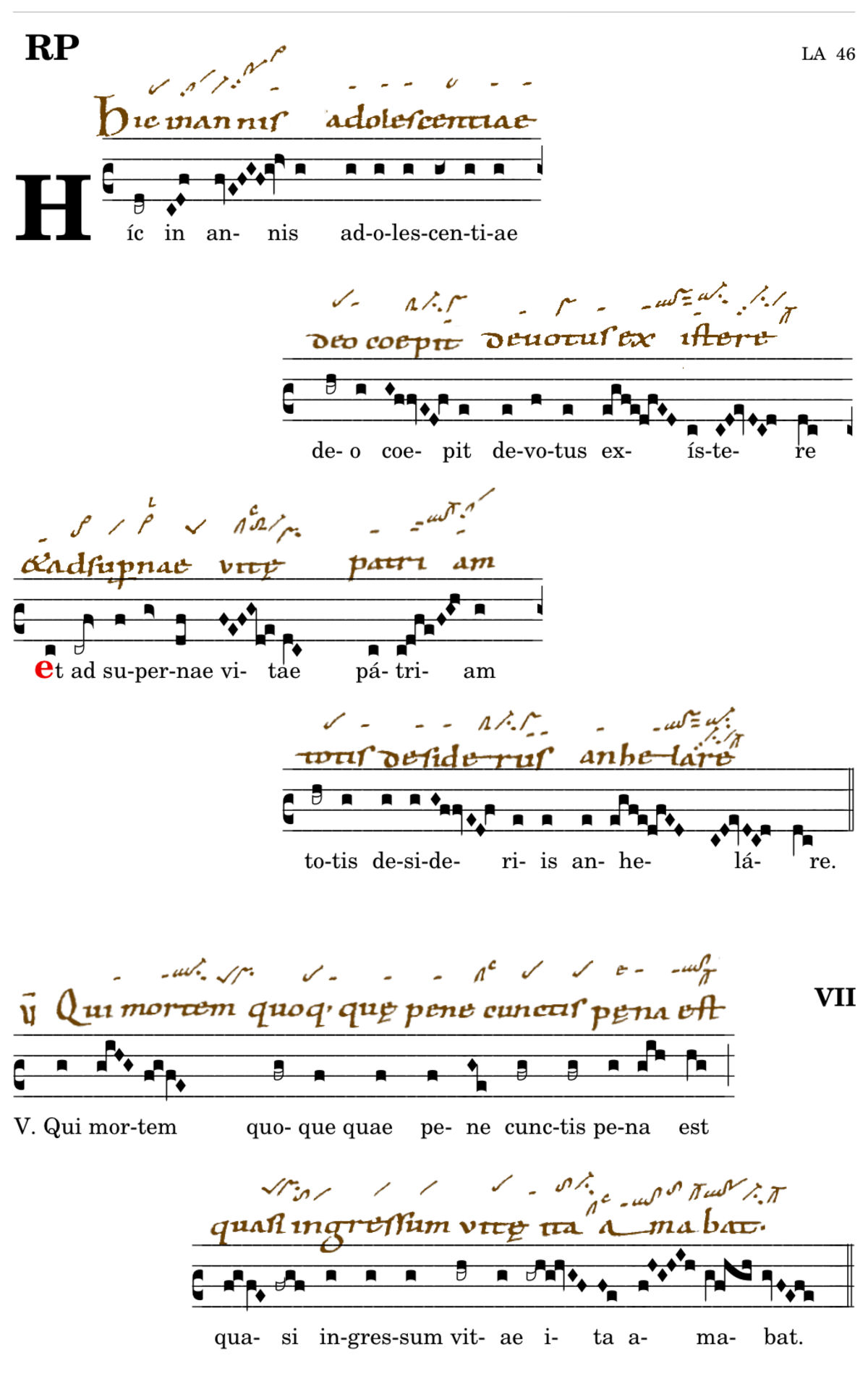 Hic in annis / adolescentiae / deus coepit devotus / 📍Et ad supernae vitae / patriam / totis desideriis anhelare. V. Qui mortem quoque quae pene cunctis pena est* quasi ingressum vitae (ita) amabat. (Wc) V.Hic itaque non solum spectabili senatorum ... verum etiam religiosam vitam duxit.