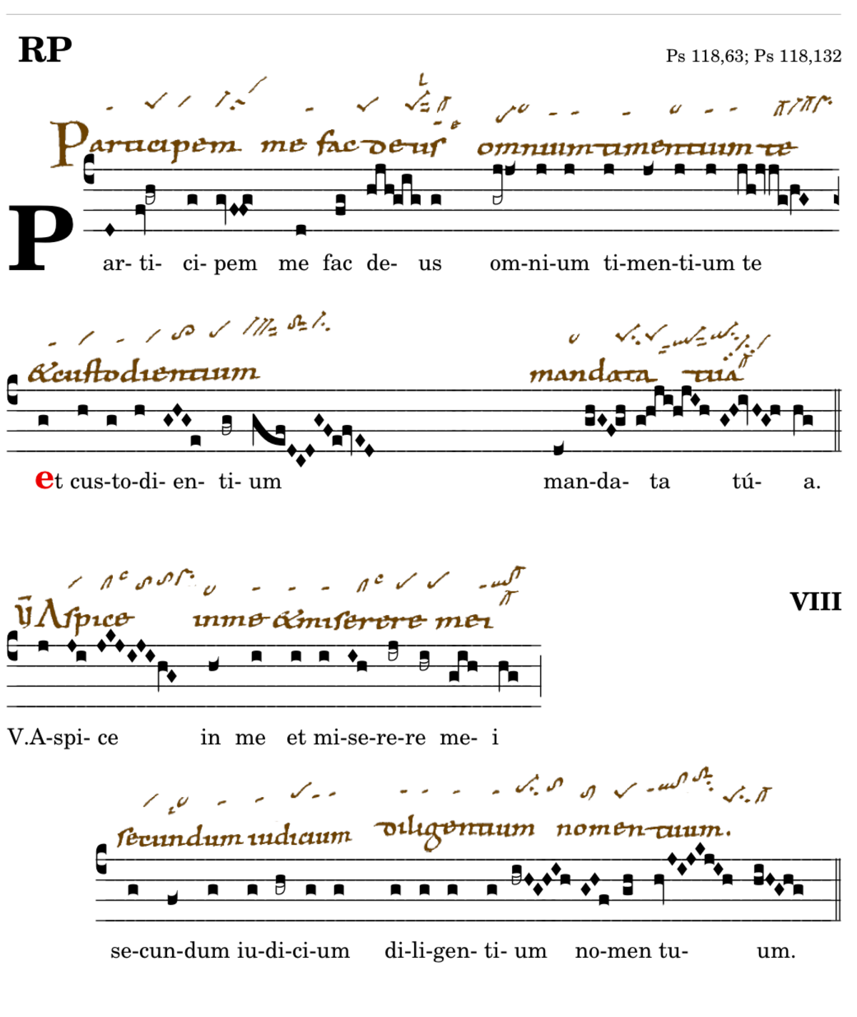 Participem me fac deus / omnium timentibus te / 📍Et custodientium / mandata tua. V. Aspice in me et miserere mei* secundum iudicium diligentium nomen tuum. Et custodientium.
