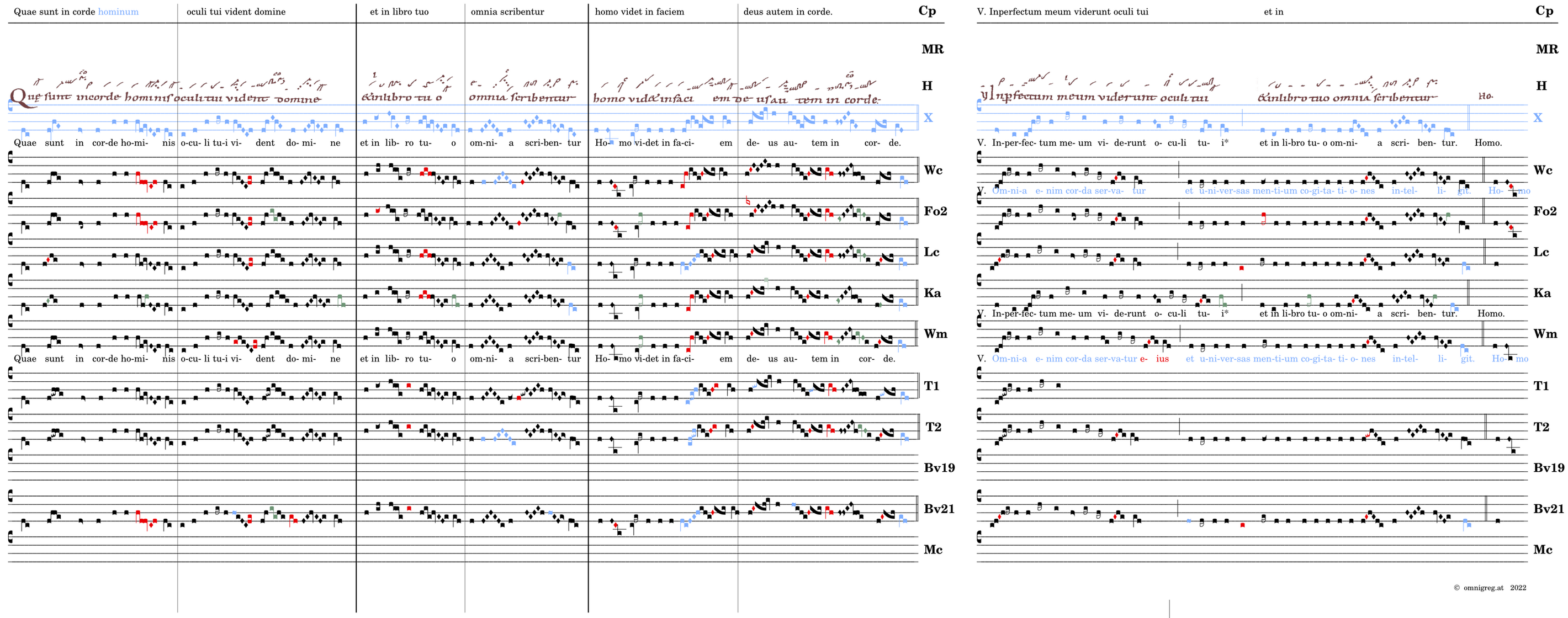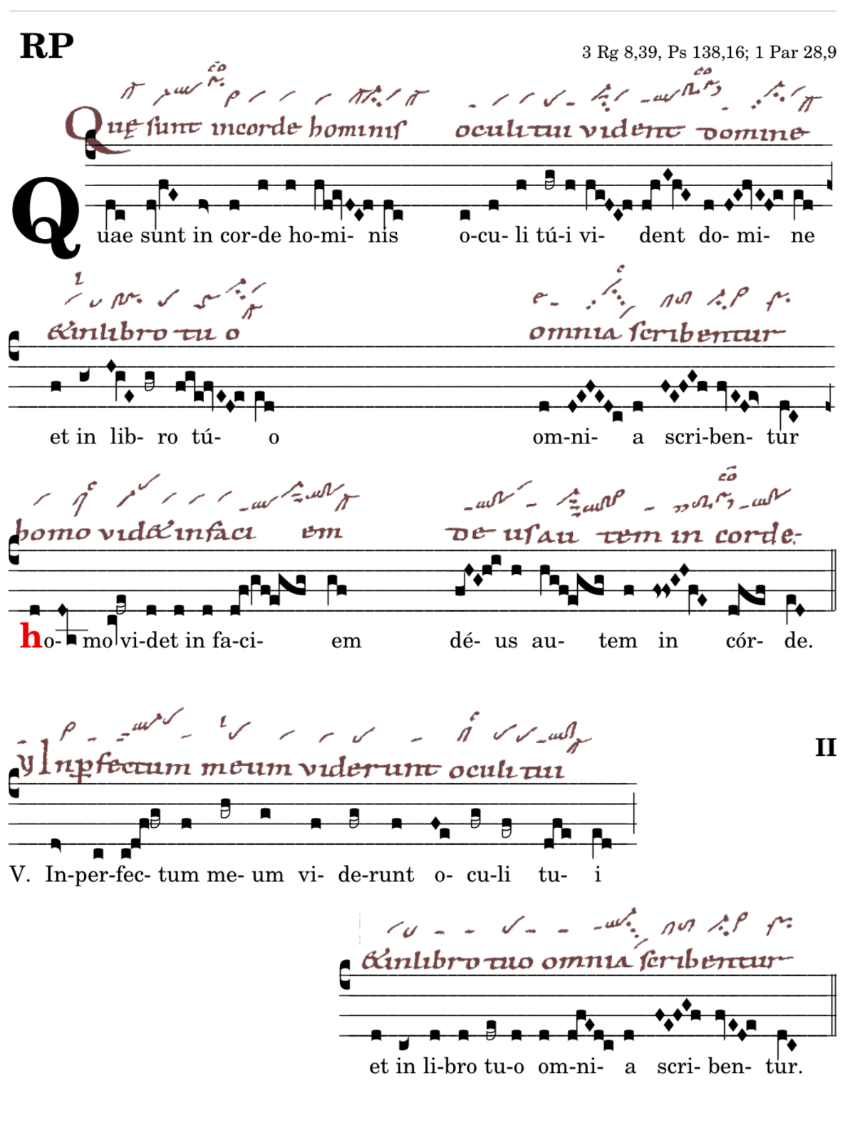 Quae sunt in corde hominis / oculi tui vident domine / et in libro tuo / omnia scribentur / 📍 homo videt in faciem / deus autem in corde. V. Inperfectum meum viderunt oculi tui* et in libro tuo omnia scribentur. (omnes) V. Omnia enim corda servatur et universas mentium cogitationes intelligit.