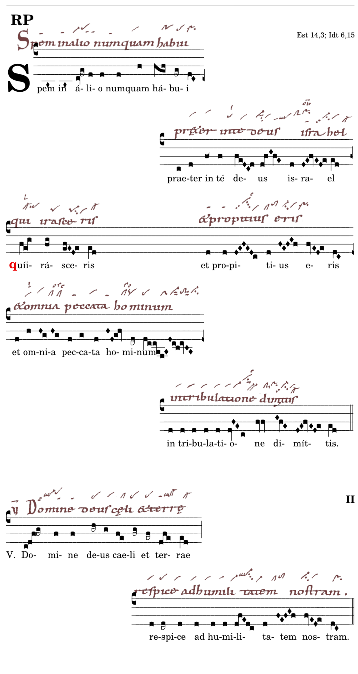 Spem in alio numquam habui / praeter in te deus israel / 📍qui irasceris / et propitius eris / et omnia peccata hominum / in tribulatione dimittis. V. Domine deus caeli et terrae* respice ad humilitatem nostram.
