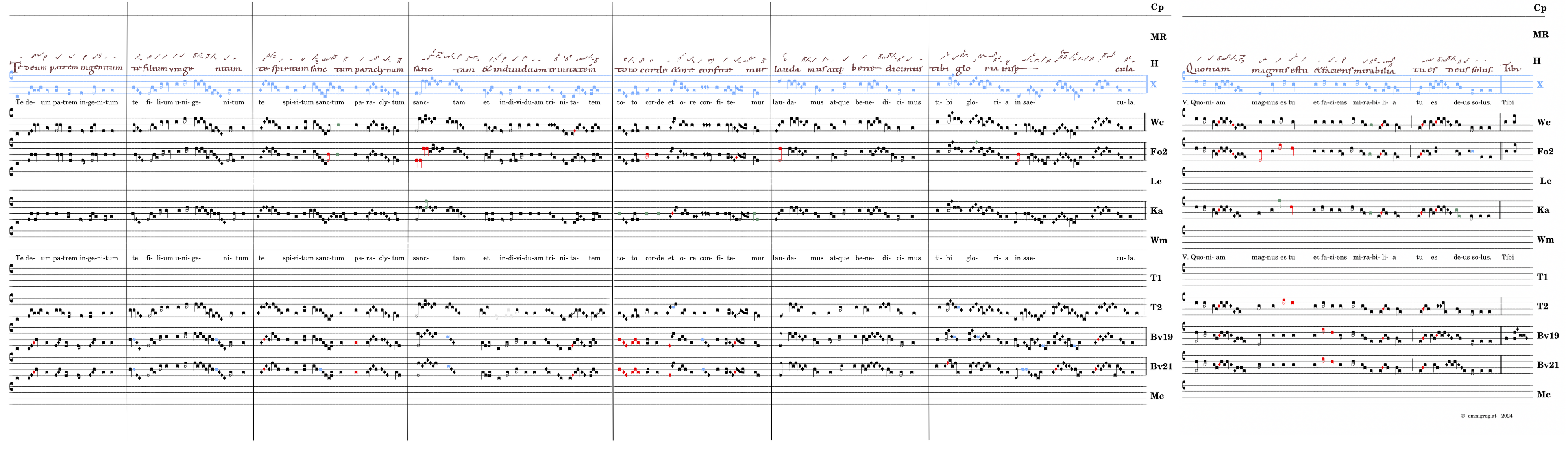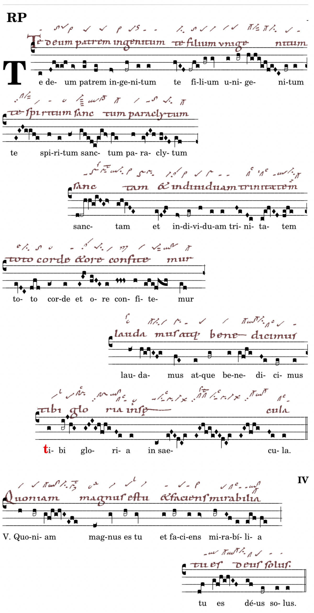 Te deum patrem ingenitum / te filium unigenitum / te spiritum sanctum paraclytum / sanctam et individuam trinitatem / toto corde et ore confitemur / laudamus atque benedicimus 📍Tibi gloria in saecula. V. Quoniam magnus es tu et faciens mirabilia* tu es deus solus.