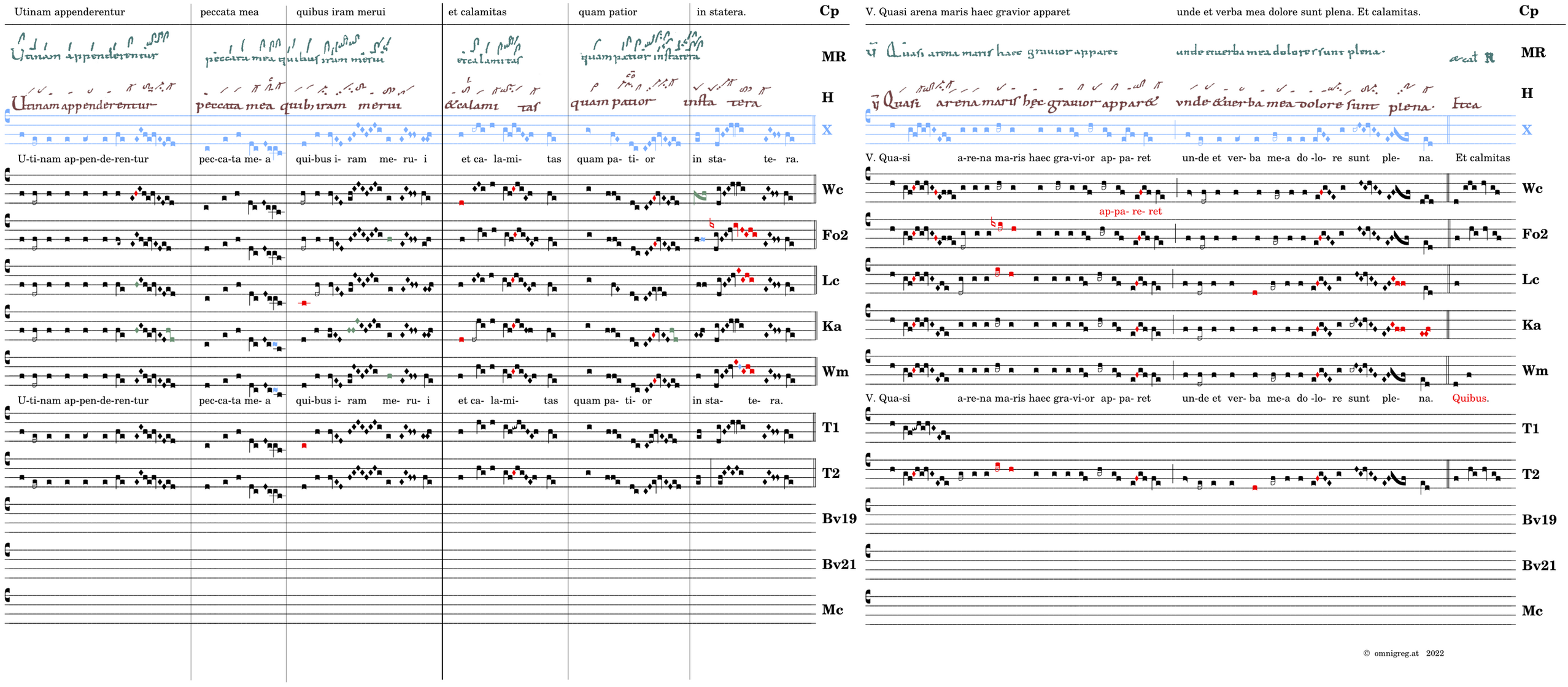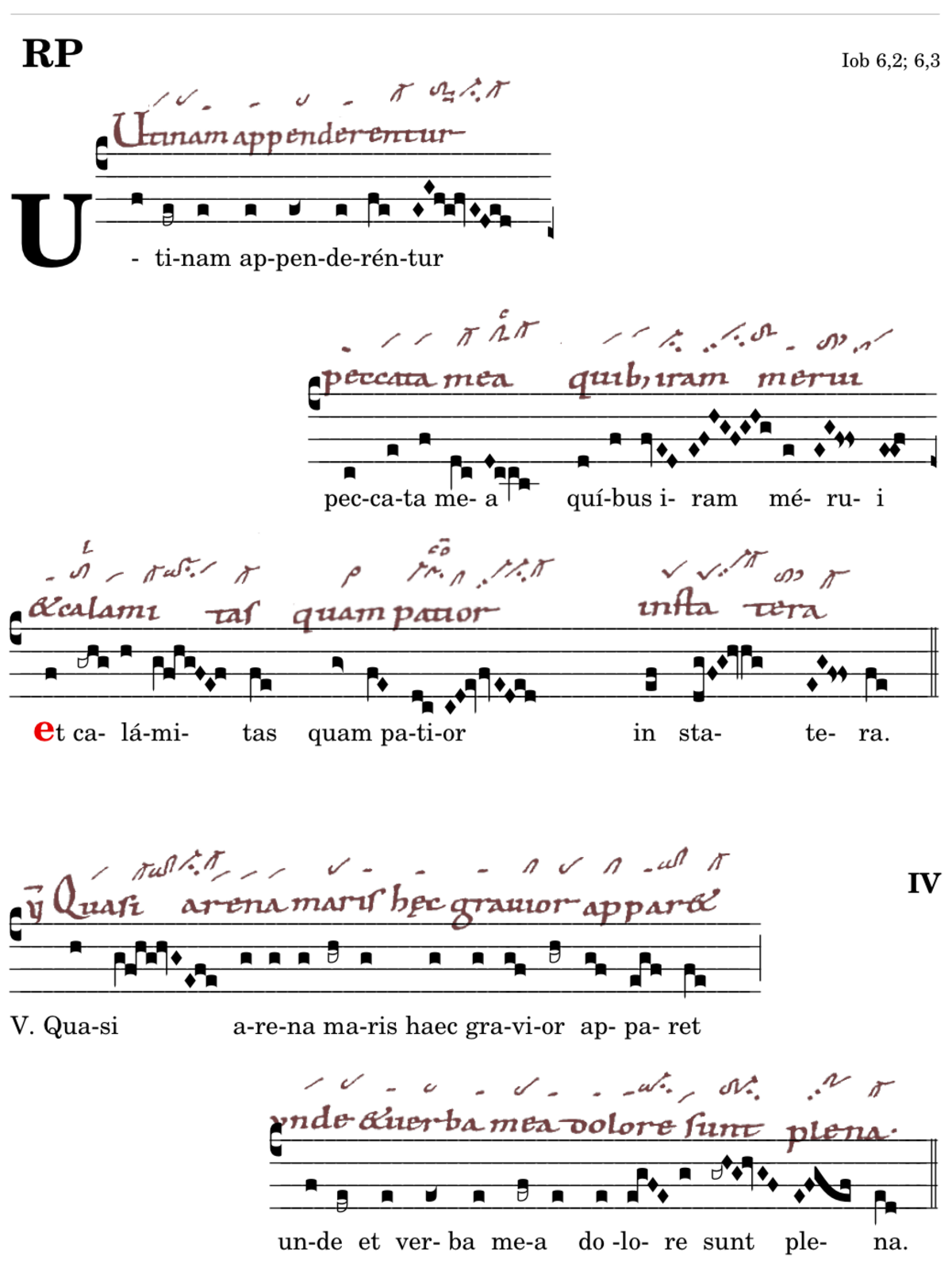 Utinam appenderentur / peccata mea / quibus iram merui / 📍Et calmitas / quam patior / in statera. V. Quasi arena maris haec gravior apparet (-apparerent)* unde et verba mea dolore(s) sunt plena.