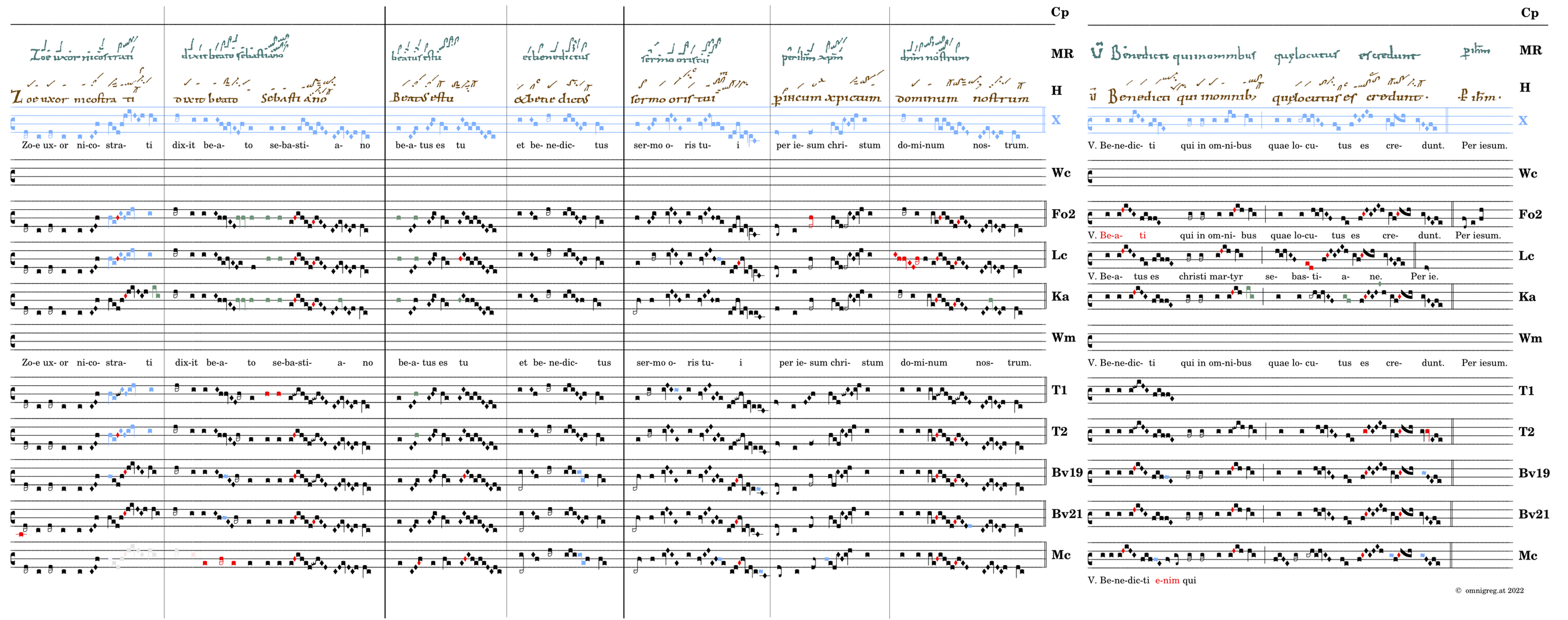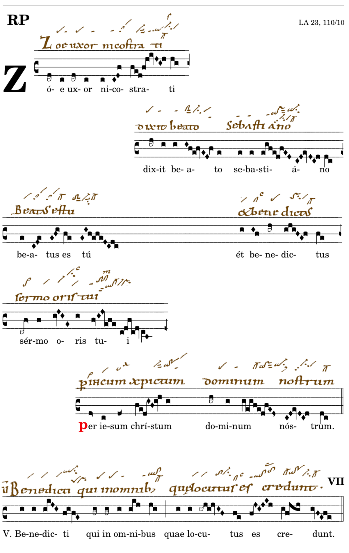 Zoe uxor nicostrati / dixit beato sebastiano / beatus es tu / et benedictus / sermo oris tui 📍per iesum christum / dominum nostrum. V. Benedicti (T2:-Beati) qui in omnibus* quae locutus es credunt.