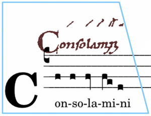 Die Virga strata, die in den einakzentigen Fällen den Absprung vom „fa“ zum „re“ anzeigt, ist in Fällen, wo die Melodie bereits das „re“ erreicht hat, das Signal für das folgende „do“.