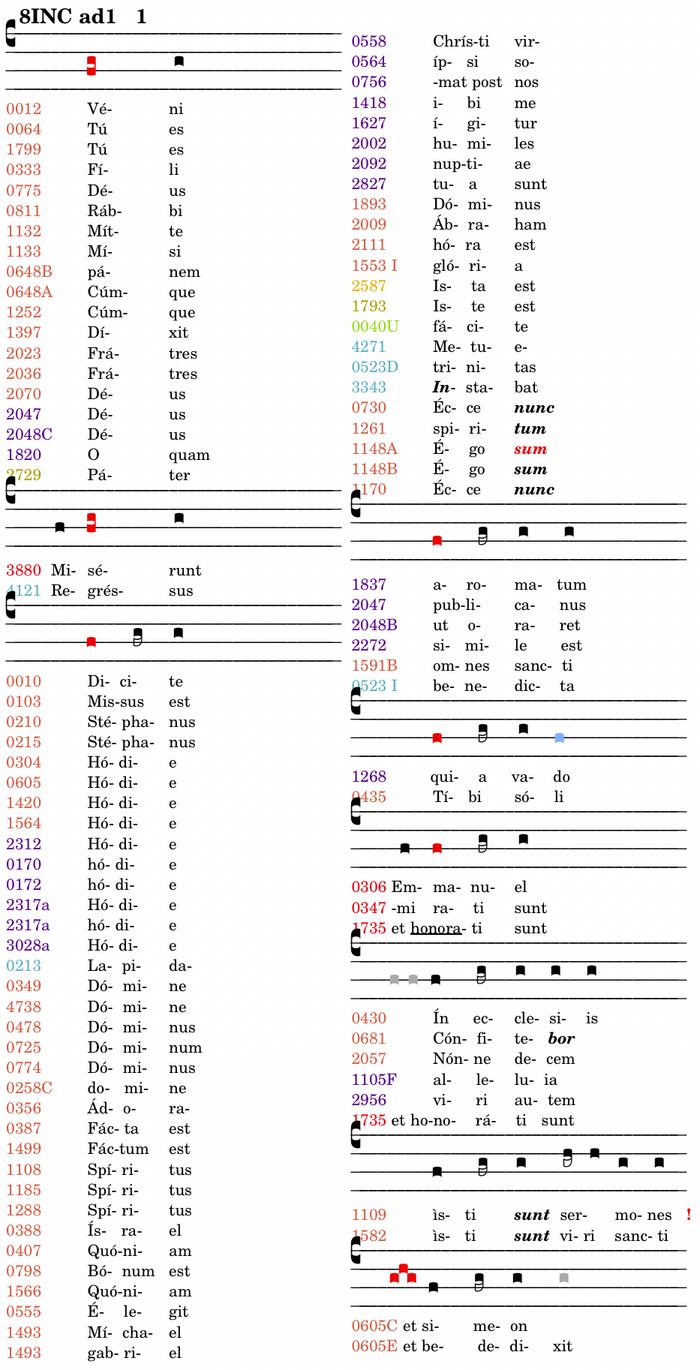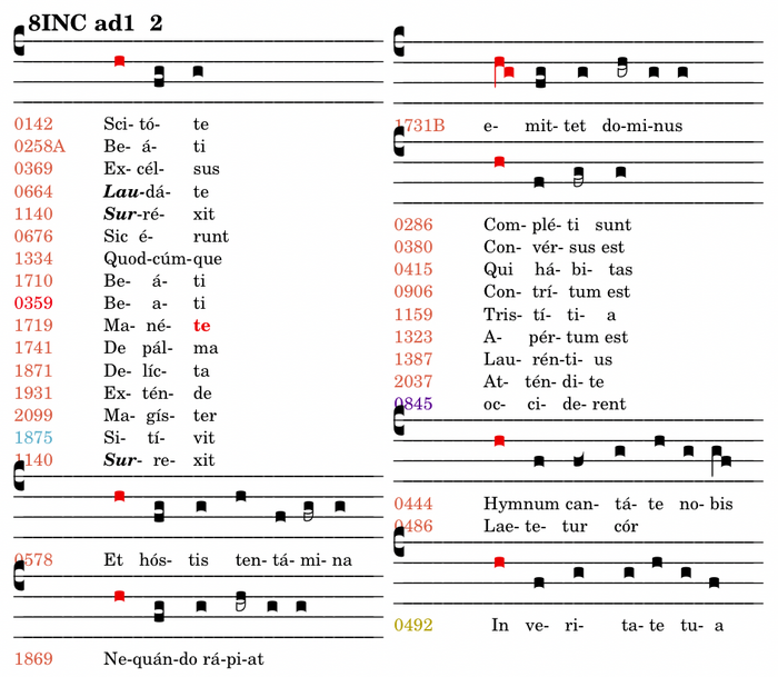 Wie im 1. Modus beginnen spannungslos unterkühlt gesprochene Texte unter der Finalis und heben sich nur bis zur dieser, hier von „fa“ zum „sol“. Während der Protus weniger als 100 Fälle dieses Cento aufweist, sind es im Tetrardus (plagalis) mehr als 200 Fälle, die im TT abwechslungsreicher variiert werden als im PR. Die übliche Behandlung von PO - PPO - O wird angewendet, praetonische Silben, etwa in 1043, werden wie im Quintpes-Incipit des 1. Modus behandelt (cf. in 1INC 5Pes die praetonischen Silben).