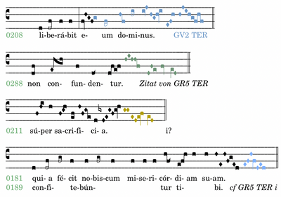 0208 wendet sich die Terminatio des Verses in den 2. Modus (modus de profundis). Das ist dem Text dieses GR geschuldet.