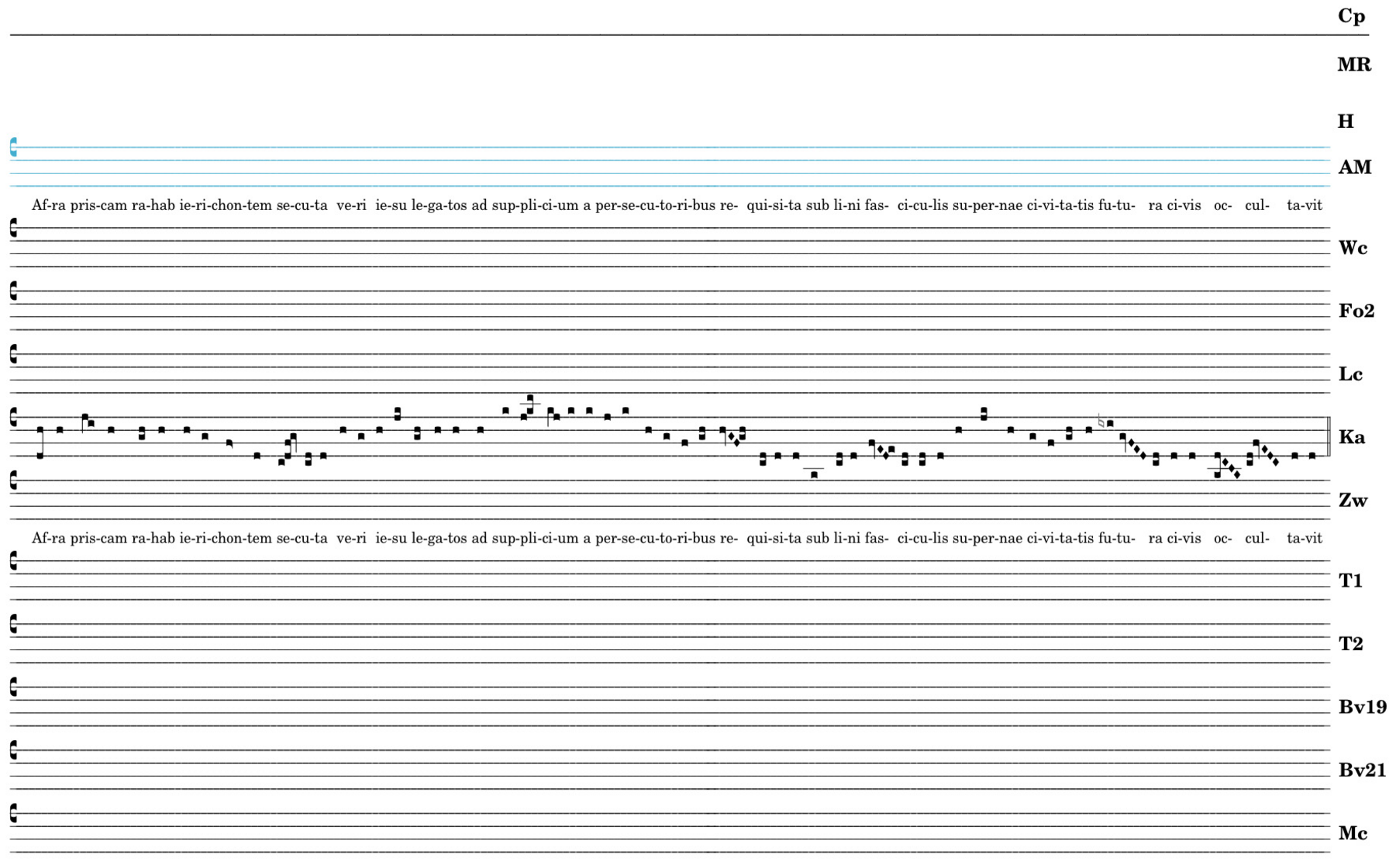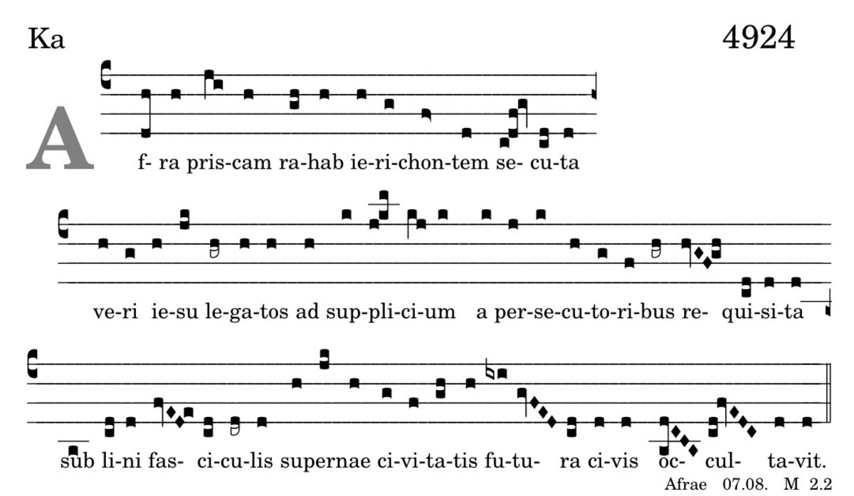 Afra priscam rahab / ierichontem secuta / veri iesu legatos / ad supplicium / a persecutoribus requisita / sub lini fasciculis / supernae civitatis futura civis / occultavit.