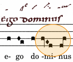 Je nach Situation kann der Pes kurrent oder nicht kurrent sein, die Clivis kann sich zum Torculus erweitern (Clivis urgens) oder auch zum nkTorculus. So in: