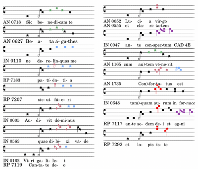 0162 macht der Porrectus flexus zusätzlich Tempo. In manchen Fällen wird in einzelnen Handschriften der Intonationstorculus durch eine Tonleiter entschärft.
