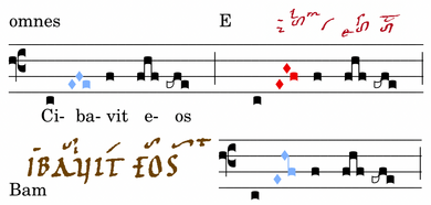 „Ci-ba-vit eos“ Nach Studium der Responsorien stellt sich die Frage, ob dieser Trc nicht ursprünglich wie in RP2 A i ein Trc „do-mi-re“ gewesen ist.