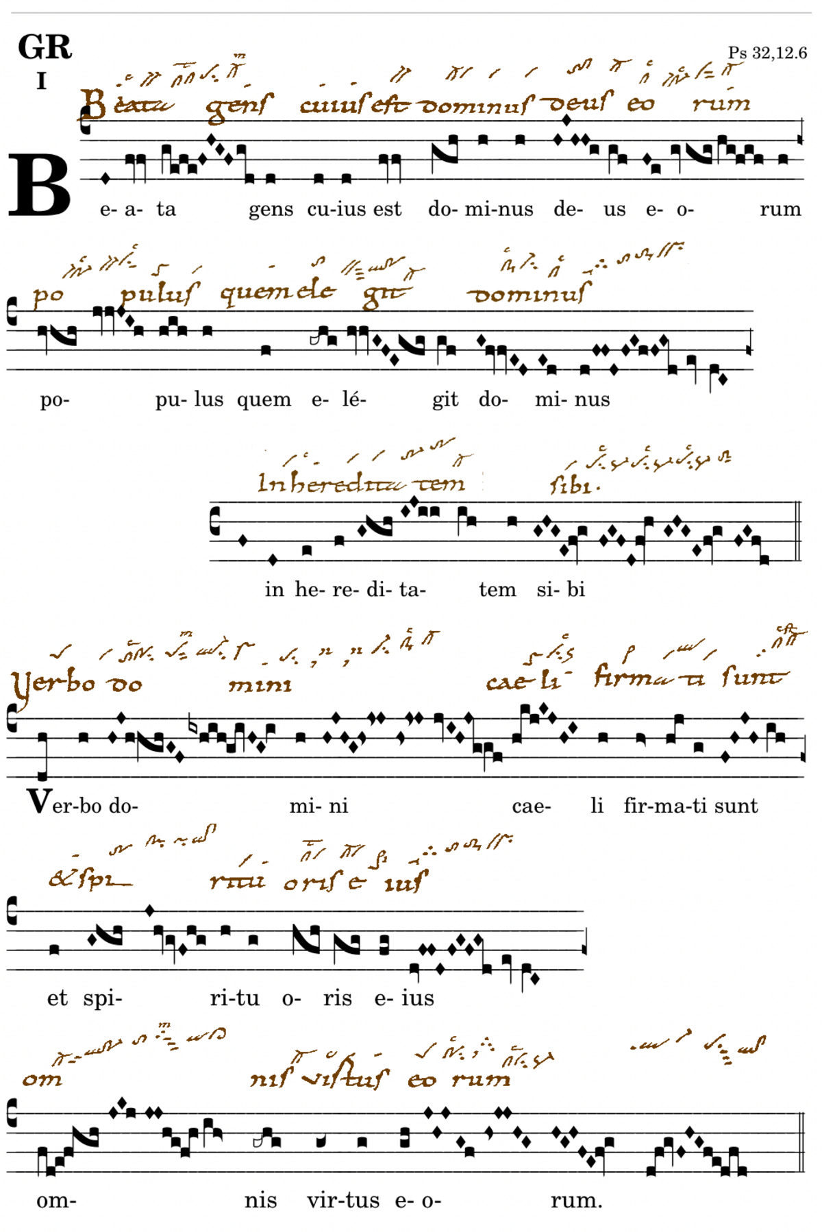 Selig das Volk, dessen Gott der Herr ist* das Volk, das er sich zum Erbe erwählt hat. V. Durch das Wort des Herrn wurden die Himmel geschaffen* ihr ganzes Heer durch den Hauch seines Mundes. Blessed is the people whose God is the Lord*, the people whom he has chosen as his inheritance. V. By the word of the Lord the heavens were created* all their host by the breath of his mouth.