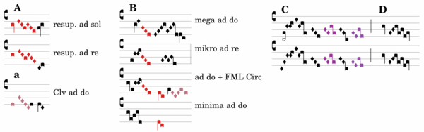 Jubilus repeats and varies an 8(9)-note formula A and concludes with a shortened variant AAa This is followed by a 15-note formula B, which is repeated in a shortened form and also forms the core of the