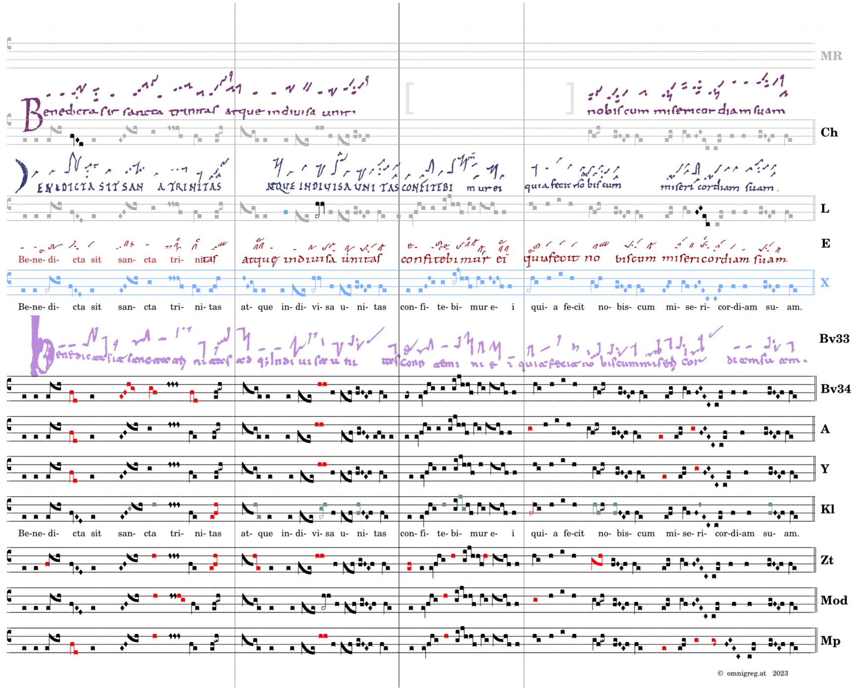 Benedicta sit sancta trinitas / atque indivisa unitas / confitebimur ei / quia fecit nobiscum / misericordiam suam.