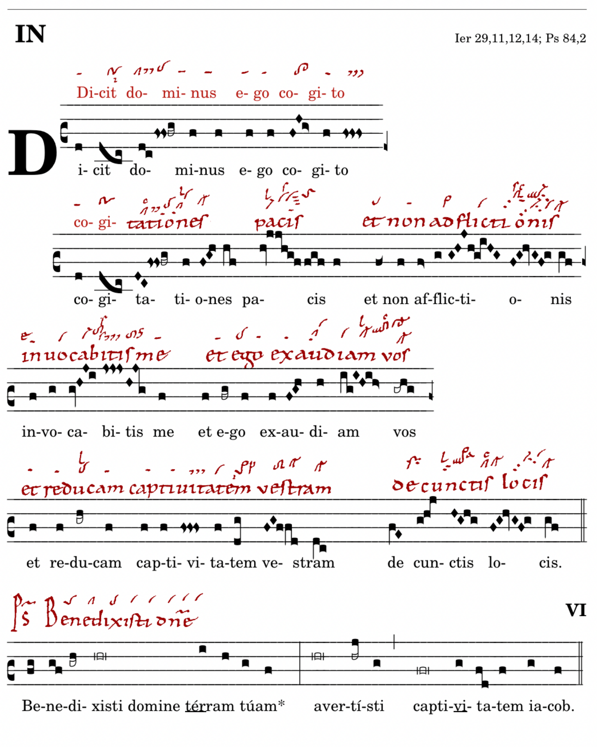 Dicit dominus / ego cogito / cogitationes pacis / et non afflictionis / invocabitis me / et ego exaudiam vos / et reducam captivitatem vestram / de cunctis locis.