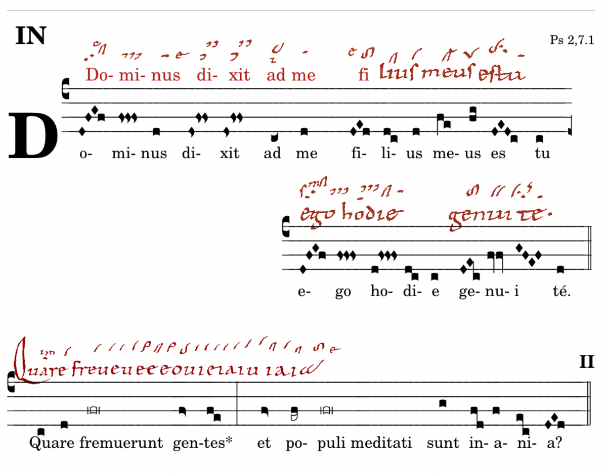Dominus dixit ad me / filius meus es tu / ego hodie genui te.