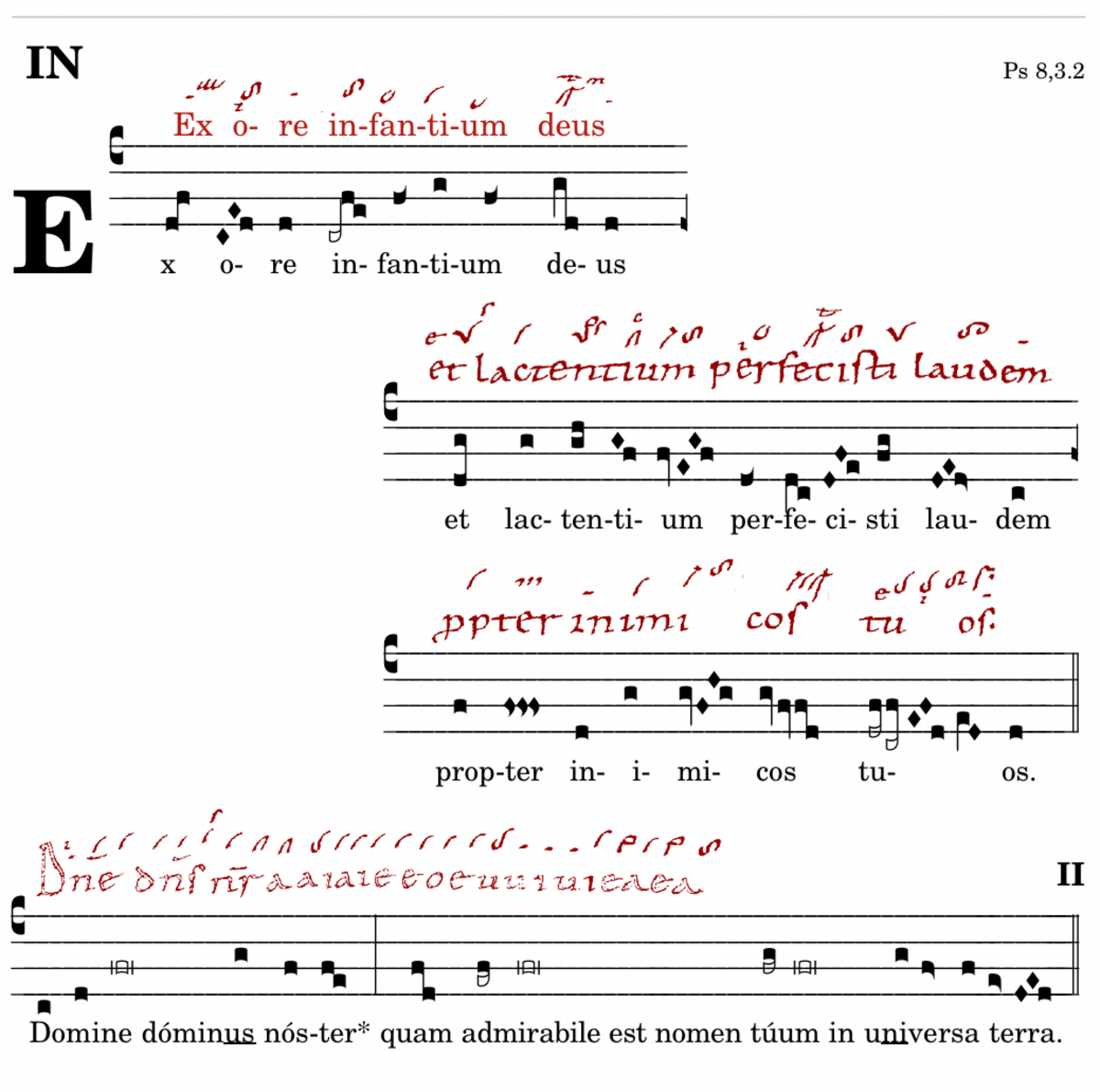 Ex ore infantium deus / et lactentium perfecisti laudem / propter inimicos tuos.
